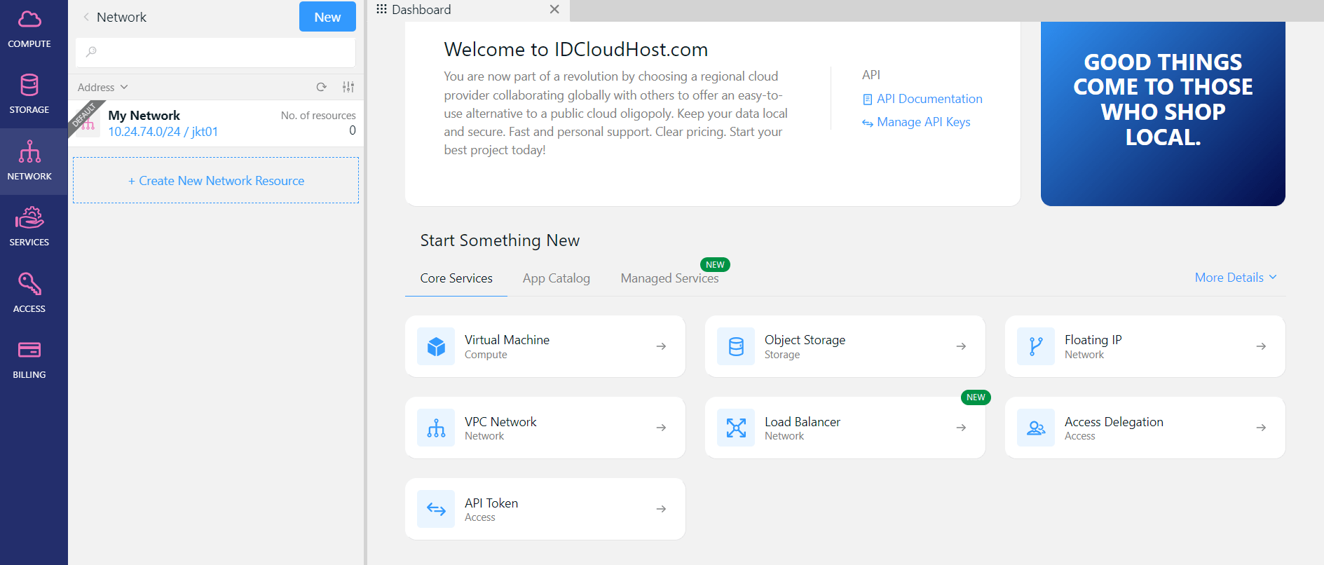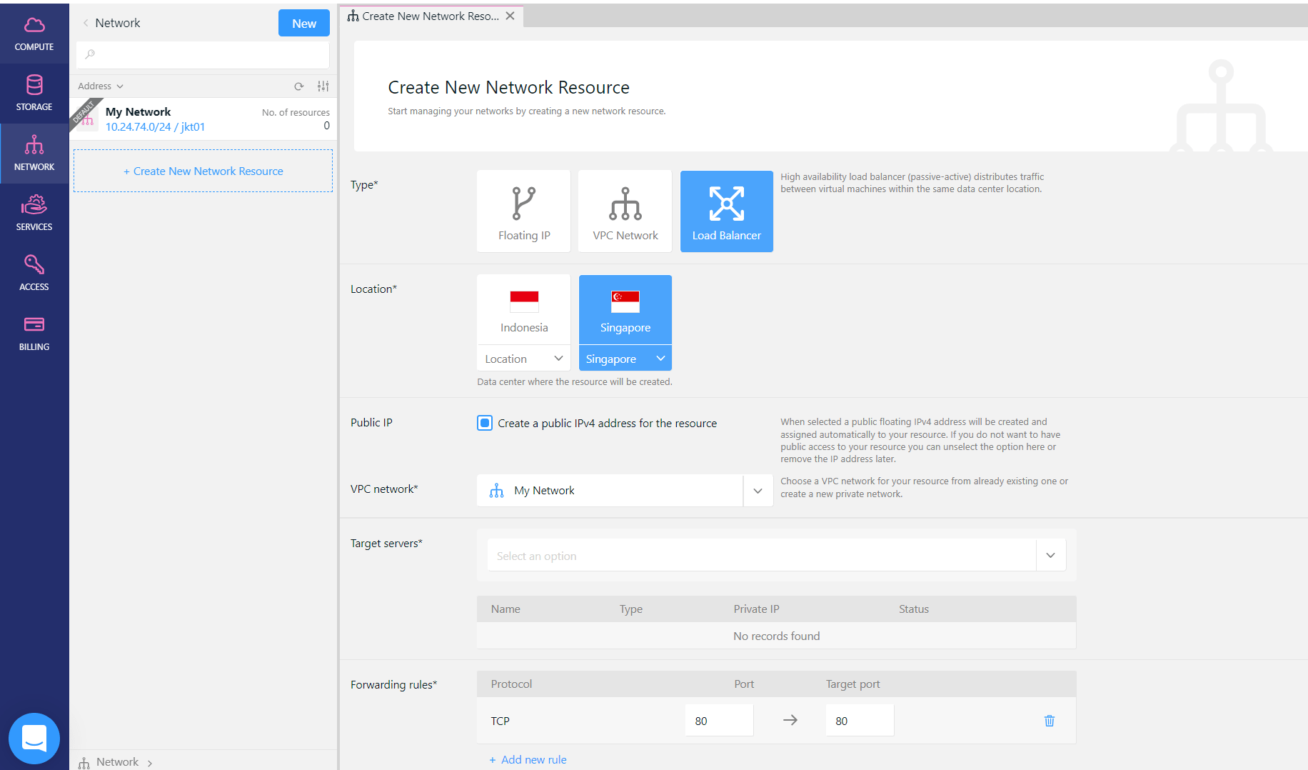 Jika Anda menggunakan layanan Cloud VPS IDCloudHost, Anda bisa menggunakan Load Balancer dengan login ke Console dan mengklik Network > Core Services > Load Balancers.