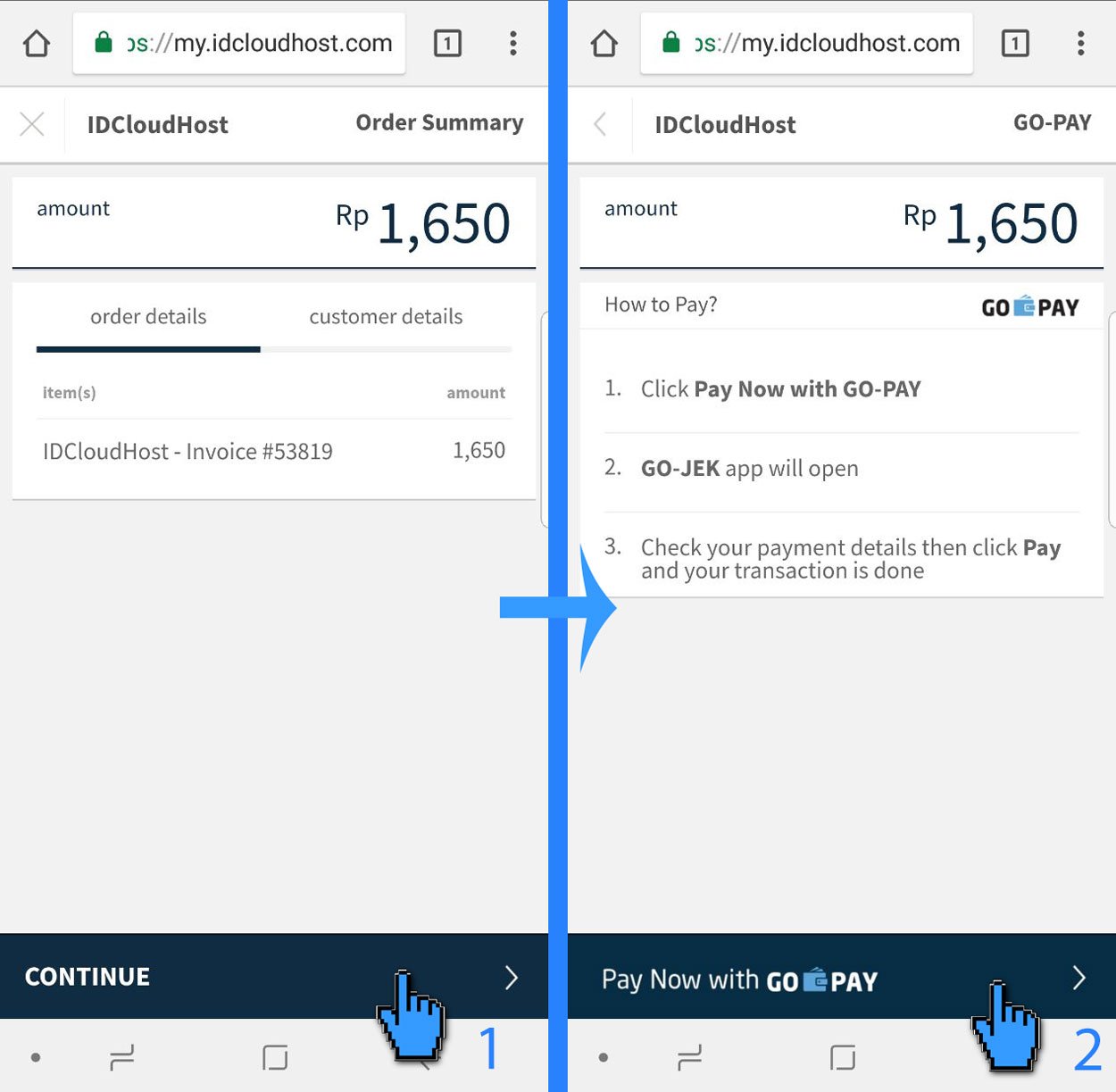 KlikContinue - Pastikan Pembayaran Anda sudah Sesuai dan Benar, Jika iya klik Pay Now with GO-PAY.