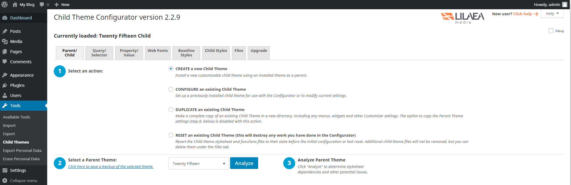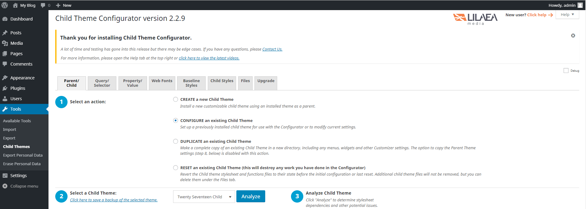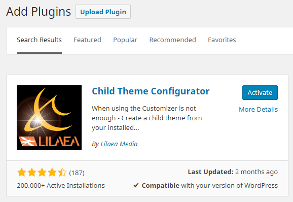 Child Theme  Configurator adalah sebuah plugin yang bisa ditemukan di Plug > Add new sebagai admin.