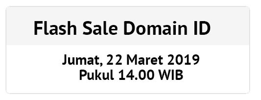 Mau Domain ID Super Murah, Yuk ikutan Flash Sale Domain ID Super Murah Se-Indonesia dengan Potongan Harga 90% atau Rp 10.000 untuk 1 Domain ID! Wah Murah banget ya, Amankan segera Brand Anda. Jangan sampai kelewatan. Promo Flash Sale ini berlangsung Hari Jumat, tanggal 22 Maret 2019 Jam 14.00 WIB dengan Kuota 50 Orang pertama.